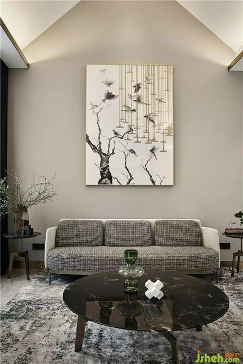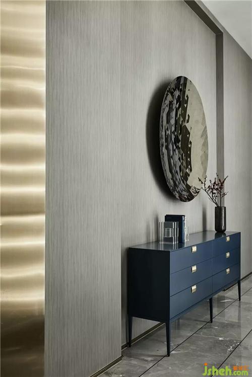 老人房以“高山流水”為主題,暖灰調(diào)的色彩舒適靜謐,墻面不銹鋼造型的延續(xù),在傳統(tǒng)的中式意境中注入現(xiàn)代時尚元素,整個色調(diào)沉穩(wěn)雅趣,別墅裝飾符合老年人的審美情趣。