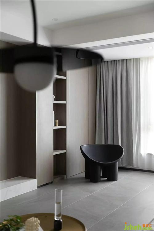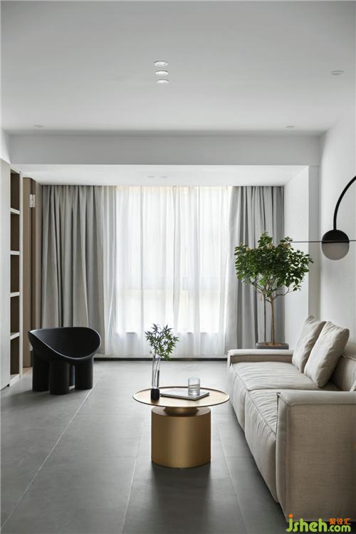 客戶是一對年輕的夫婦,杭州裝修設計師在空間上把陽臺合并到客廳拓展視覺感受,優(yōu)化客廳會客功能,生活陽臺更改到北面重新規(guī)劃后的洗衣房晾曬一體,功能獨立,動線互不打擾。
