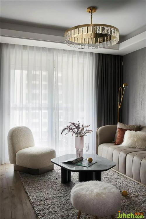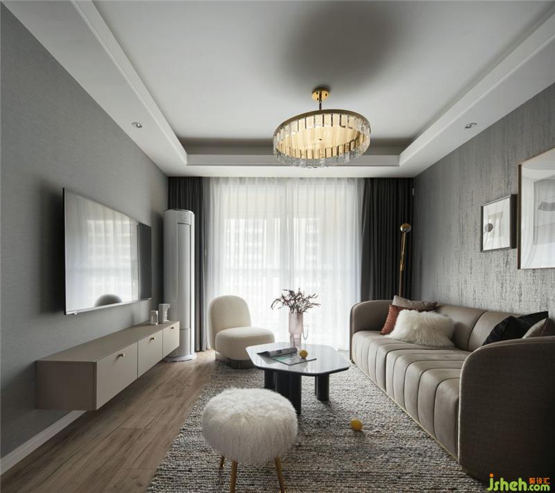 色彩在空間里面起到非常重要的作用,深淺灰的合理使用可大大提高空間視覺感,墻紙的肌理和乳膠漆形成鮮明的對比,奶咖色家具和局部黑色飾品的點(diǎn)綴,豐富了整個(gè)空間的層次,金屬質(zhì)感的配飾又增加了時(shí)尚輕奢的效果。