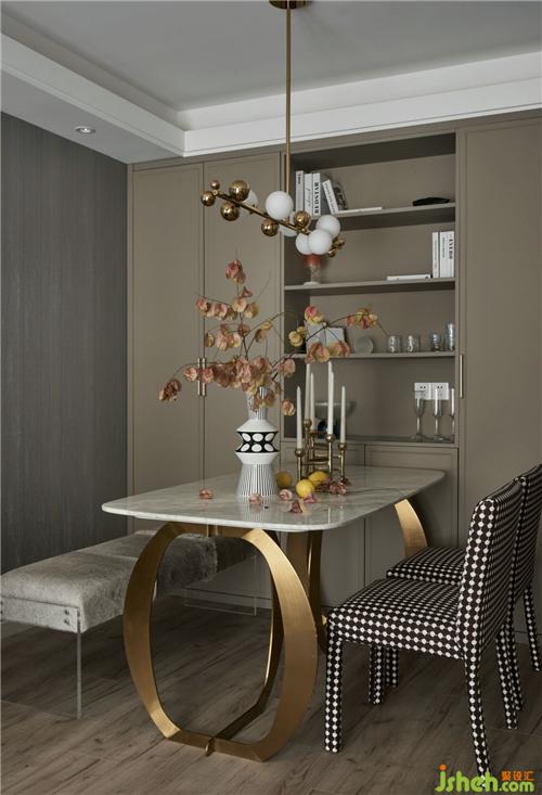 改造后的餐廳增加了儲物與展示功能,咖色柜門與客廳主調(diào)沙發(fā)彼此呼應(yīng),杭州裝修設(shè)計(jì)更好的提升空間協(xié)調(diào)度,融合中豐富層次。