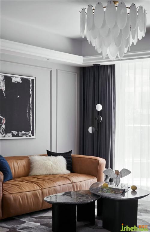 原始的屋況,樣板房的氣息非常濃郁,我們?cè)诳刂聘脑斐杀镜耐瑫r(shí),最大化的利用軟裝去改變他固有的風(fēng)貌,首先以充滿時(shí)尚藝術(shù)感的壁紙取代原有墻面復(fù)雜造型,杭州裝修設(shè)計(jì)沙發(fā)背景以簡(jiǎn)單線條分區(qū),硬裝色彩呈現(xiàn)黑白灰的色塊,棕色皮質(zhì)沙發(fā)呼應(yīng)原始地面石材,墨藍(lán)色的單椅跳動(dòng)空間氛圍,再搭配精選的配飾、燈具讓整個(gè)空間充滿了現(xiàn)代時(shí)尚感。