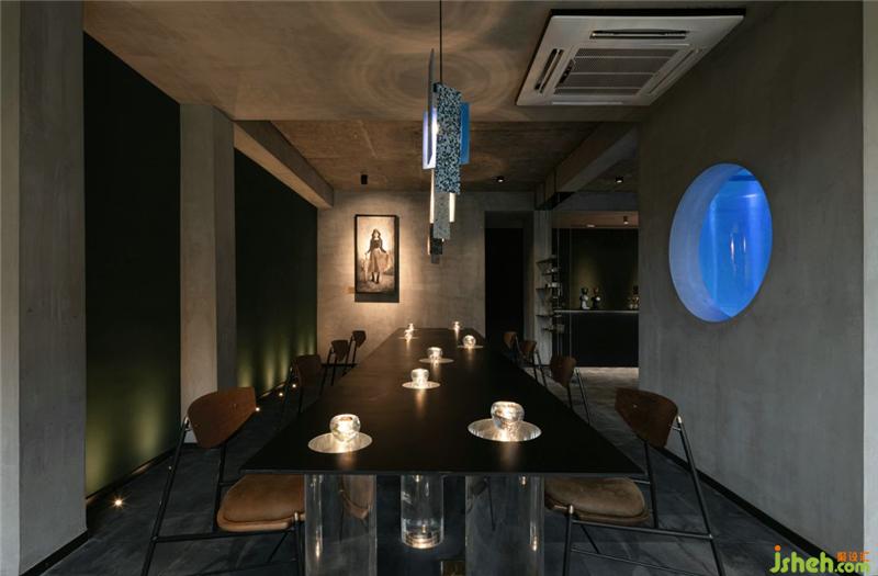 隨著深入,面與面交疊產(chǎn)生的空間立體感,在燈光的渲染下,產(chǎn)生特定的節(jié)奏和韻律,形散卻意聚、曖昧卻有力,滲透出寫(xiě)意之感。這個(gè)杭州力設(shè)計(jì)會(huì)所設(shè)計(jì)師特定的水吧臺(tái),燈光縈繞,三五好友,一杯咖啡,一杯茶,一首音樂(lè),足以駐留一天的時(shí)間。