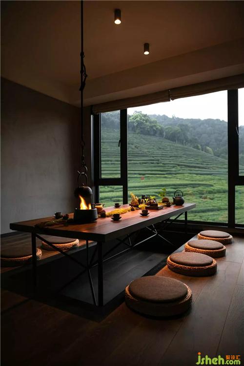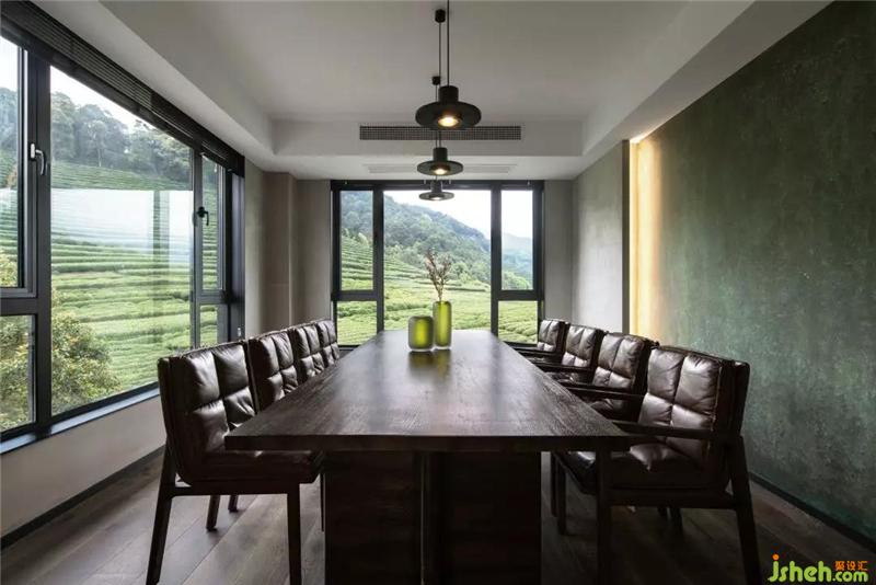 作為私人聚會(huì)和接待雅集的雙重屬性,滿(mǎn)足空間的功能需求是不可須臾或缺的。會(huì)議室和茶室享受最好的采光面;大面玻璃墻圍構(gòu)的通透氛圍,使人的視線(xiàn)可以徑直穿透室外的茶園之景,延伸至飄渺的云霧處。