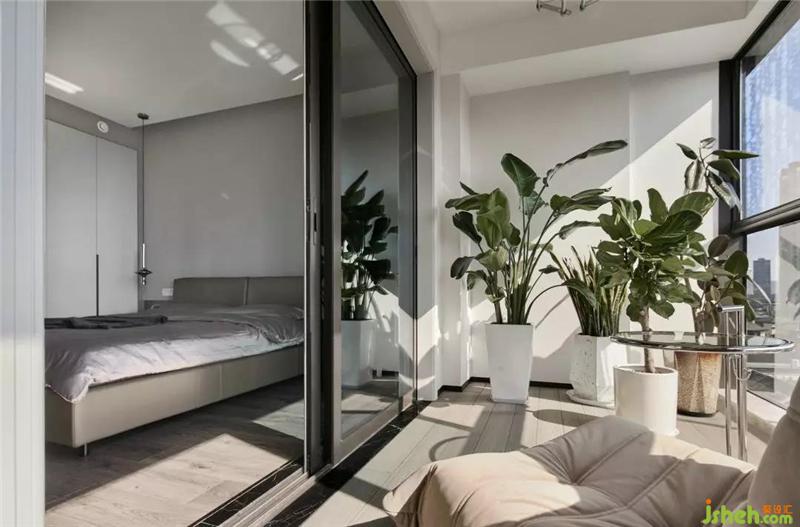 臥室灰白木的色調(diào),雅致的布置給人舒心放松的感覺,獨(dú)有的大陽(yáng)臺(tái)和落地窗,紹興裝修設(shè)計(jì)加以綠植陽(yáng)光的點(diǎn)綴,單看著就是一種享受。