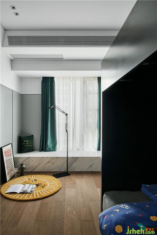 兒童房色彩相對(duì)其他空間要豐富一些,減去了沉穩(wěn)的實(shí)木,力設(shè)計(jì)選用斑點(diǎn)墻紙,配上黃色獅子地毯,讓整個(gè)房間生動(dòng)活潑起來(lái)!