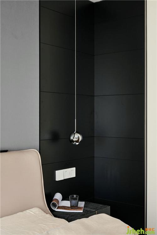 設(shè)計(jì)師把次臥打造成一個(gè)相對(duì)中性的空間,深色的硬裝搭配暖色的軟裝,沉穩(wěn)而又大方。