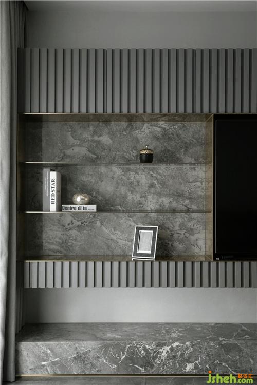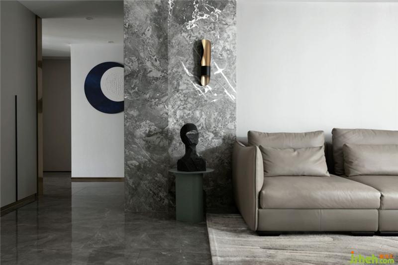 全空間以灰白色調(diào)為主,電視墻隱形柜門的格柵線條,滿足功能同時(shí)豐富了空間的層次感;沙發(fā)背后灰紋路的大理石裝飾和金屬板的運(yùn)用,杭州裝修設(shè)計(jì)營造出一種有機(jī)的現(xiàn)代奢華感,用線條勾勒出一個(gè)干凈簡(jiǎn)單的畫面。