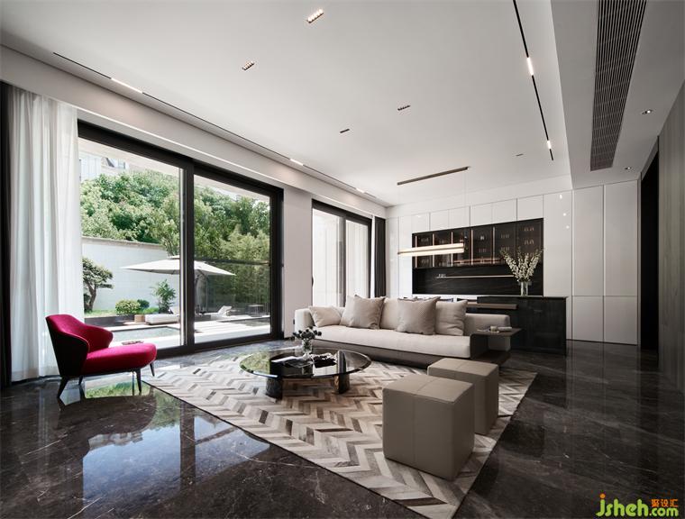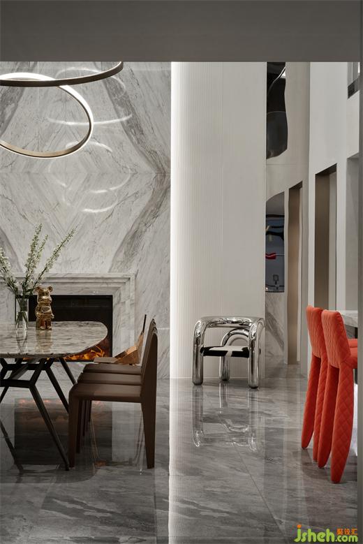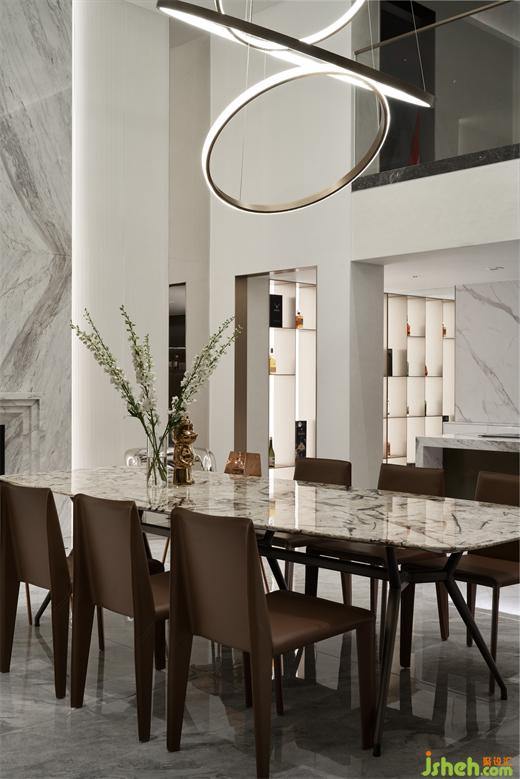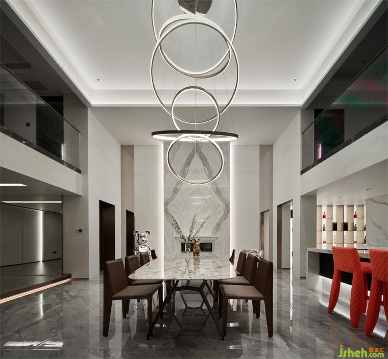 別墅裝修設(shè)計(jì)以會(huì)客區(qū)的長桌為核心,輻射地下室空間的各個(gè)功能區(qū)域,展現(xiàn)整體大而開放的體量,與極強(qiáng)的互動(dòng)性。