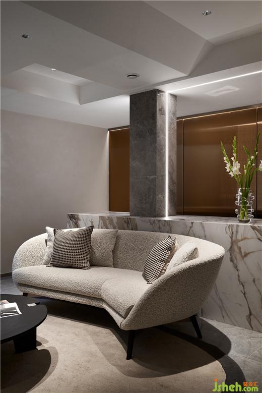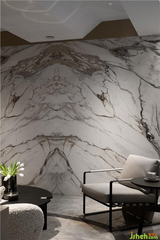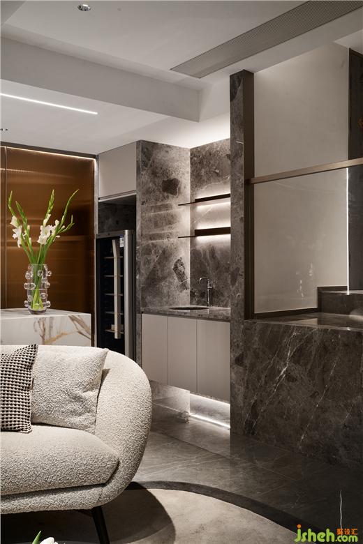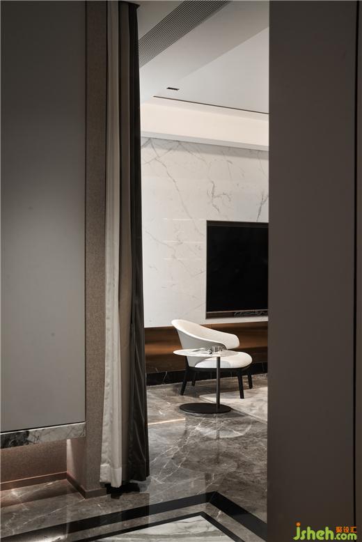 別墅設(shè)計(jì)在極簡(jiǎn)柜體的襯托下,入門的精致大理石紋理已然彰顯不凡氣質(zhì)。半遮掩的客餐廳空間既保留了一定的私密性,卻又引人入勝。一如琵琶行中所訴那般:“轉(zhuǎn)軸撥弦三兩聲,未成曲調(diào)先有情?!?