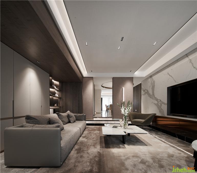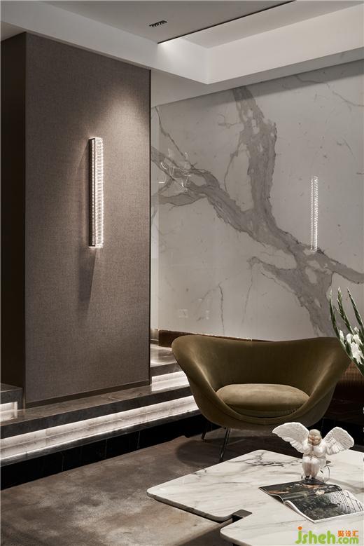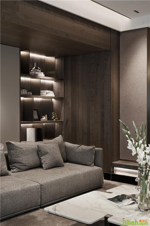 別墅設計以深咖色木飾面與白色大理石為背景搭建生活舞臺:統(tǒng)一的對話、均勻和諧的色調與材質,規(guī)整中藏著不規(guī)則的驚喜。彰顯內斂沉穩(wěn)的品格,更反映了屋主對生活品質的高級訴求。