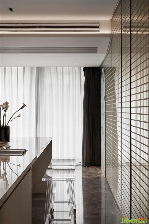 西餐島臺內(nèi)部內(nèi)嵌式的蒸箱、烤箱很大程度的釋放了空間。別墅設(shè)計視覺上的簡約流暢促進(jìn)著家人之間親切的交談,消除房屋格局帶來的距離感。