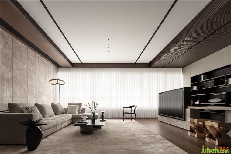 ▼ 以模塊沙發(fā)為核心的環(huán)繞式客廳