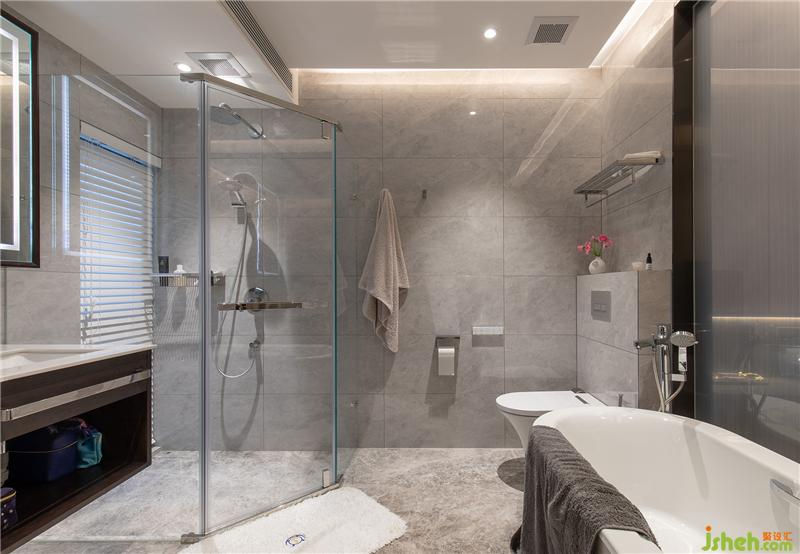 主衛(wèi)功能齊全,干濕分區(qū),采用夾絲玻璃與主臥室間隔,朦朧美盡顯!