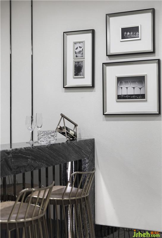 餐廳中各家具的用料與細(xì)節(jié)設(shè)計(jì)無不強(qiáng)調(diào)居住成員對生活品質(zhì)的要求,皮革與金屬的巧妙搭配足以彰顯Fendi“玩奢華于股掌之中”的驚人魄力。墻上一蓮葉則是點(diǎn)睛之筆,滿庭芳華中取佛性蓮花之清凈與脫俗。