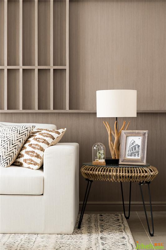 我們?cè)诳蛷d的設(shè)計(jì)中選用的都是柔和十分的顏色與布料,絲毫不會(huì)有負(fù)擔(dān)感。連墻上與天花板上的線條設(shè)計(jì)都考慮了感官享受。