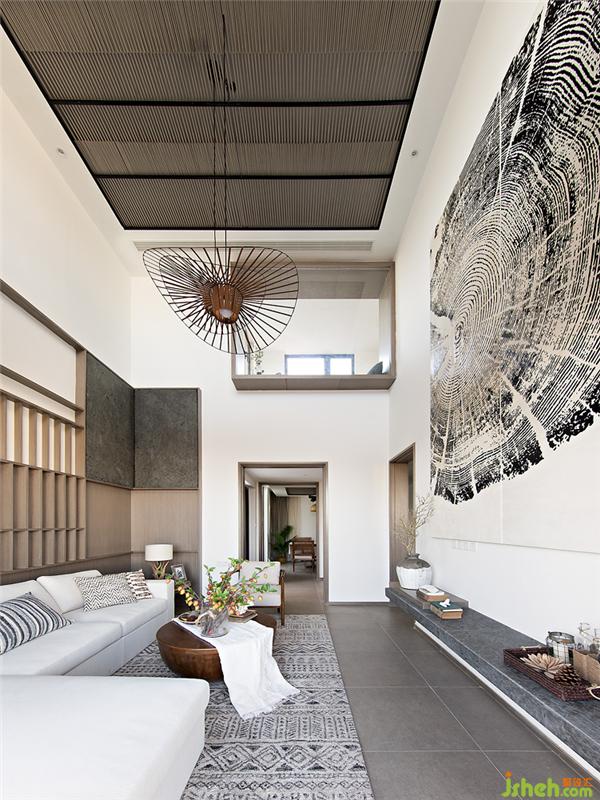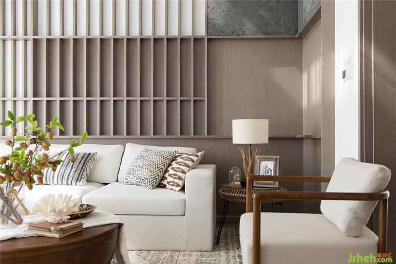 臥室中設(shè)計師選用灰麻花的基調(diào),聽似容易落入鄉(xiāng)野俗套,但采用質(zhì)感滿滿的墻壁布置與簡單大方的家紡,加以線條的捋順,一唱一和間,便讓入住者身在塵廬,也能獲得大自然的饋贈。