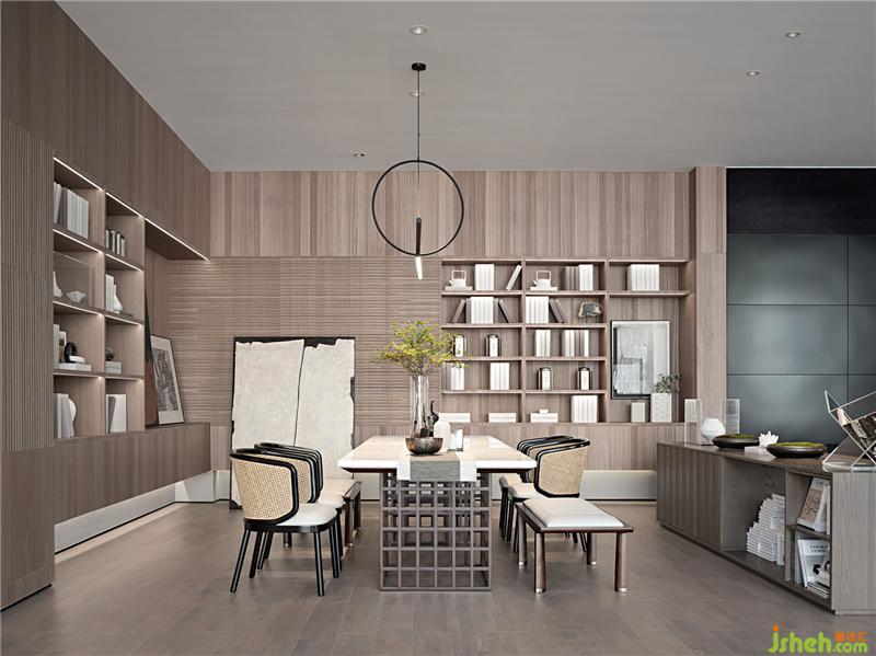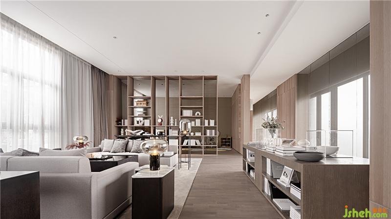 書吧洽談區(qū)以整體的暖色調(diào)為主,木色的整體空間營造出輕盈舒適的氣氛,而淺灰色的沙發(fā)增加了沉重感,深色的配飾座椅則為輕盈的氣氛增加了腳踏實地的真實感。裝修公司