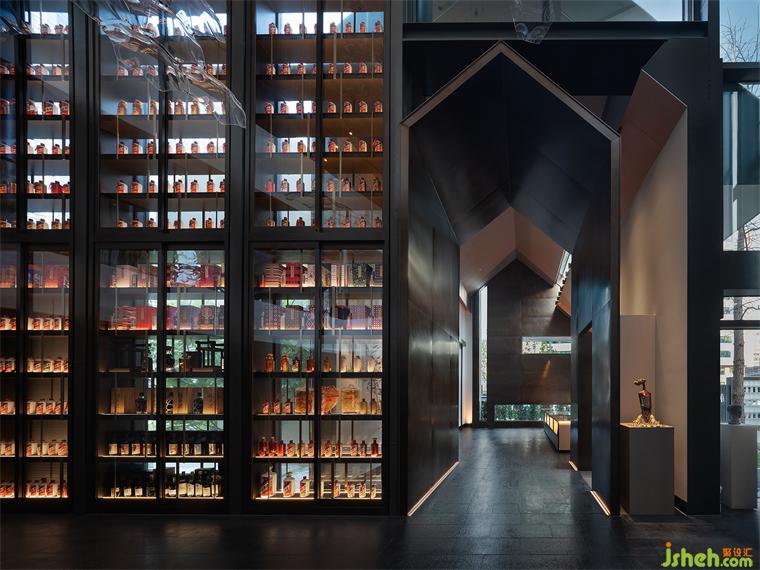 與宏大尺度建筑空間相匹配的是魯采引以為傲的“酒文化”,北京餐廳設(shè)計設(shè)有全國較大的獨立茅臺酒窖和全國藏酒數(shù)量多的紅酒窖,藏酒堆疊形成一面高墻,子曰“惟酒無量,不及亂”,又曰“百禮之會,非酒不成”,而“禮”,便是儀式感的本質(zhì)。