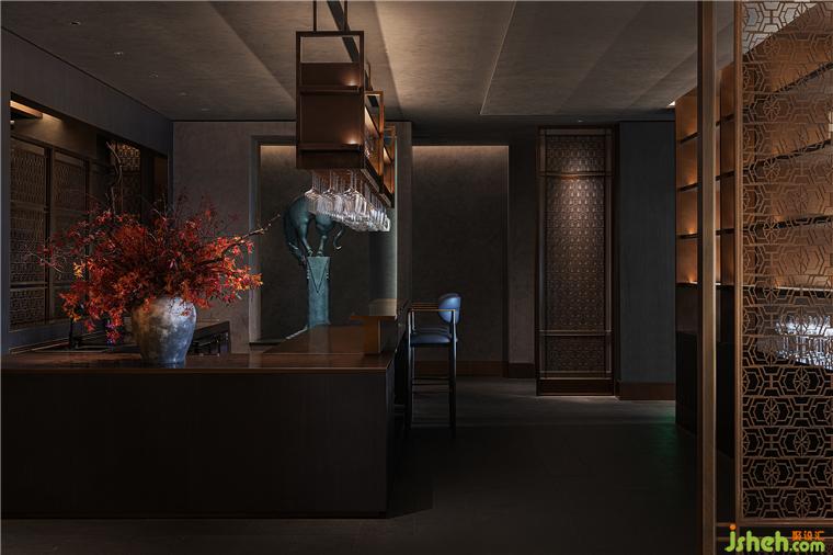 “饗”有著宴請,招待的含義,在穩(wěn)重色系背景下,喜瑞餐廳設(shè)計(jì)團(tuán)隊(duì)通過色彩來強(qiáng)調(diào)空間明暗對比,紅綠映襯,形成了有力的視覺沖擊,賦予空間無限活力。濃烈的色彩沉醉在黑色的溫柔鄉(xiāng)里,交織穿梭,如夢如幻。