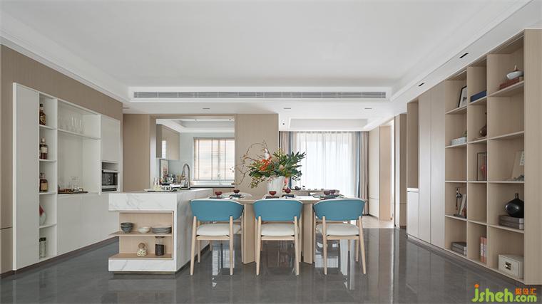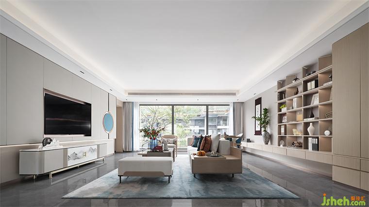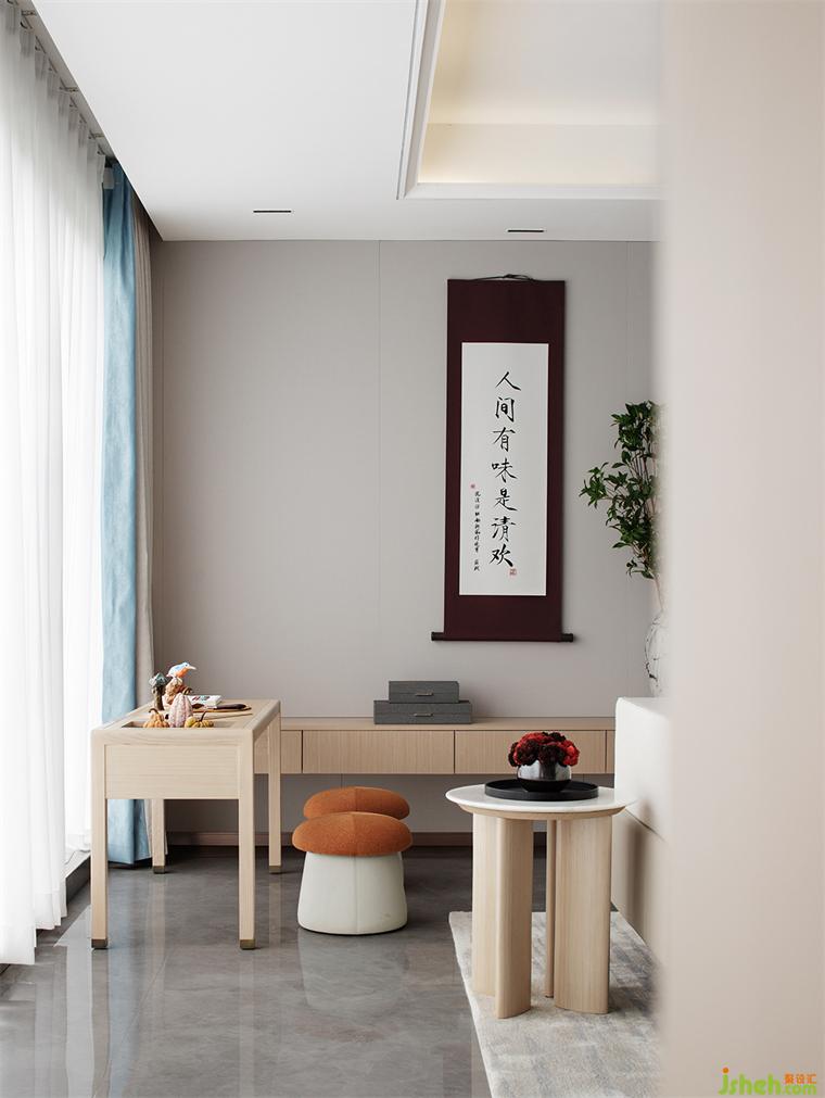 寬敞明亮的大方廳,樣板房設(shè)計以凝練的線條劃分出空間的功能和秩序,整面落地窗將窗外園林景觀盡收其中,陽光清風(fēng)徐徐入室,給詩意生活增添無限雅趣。