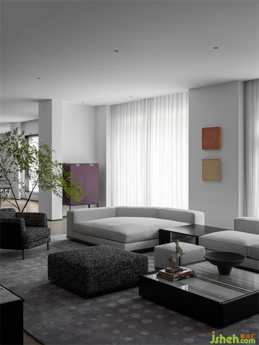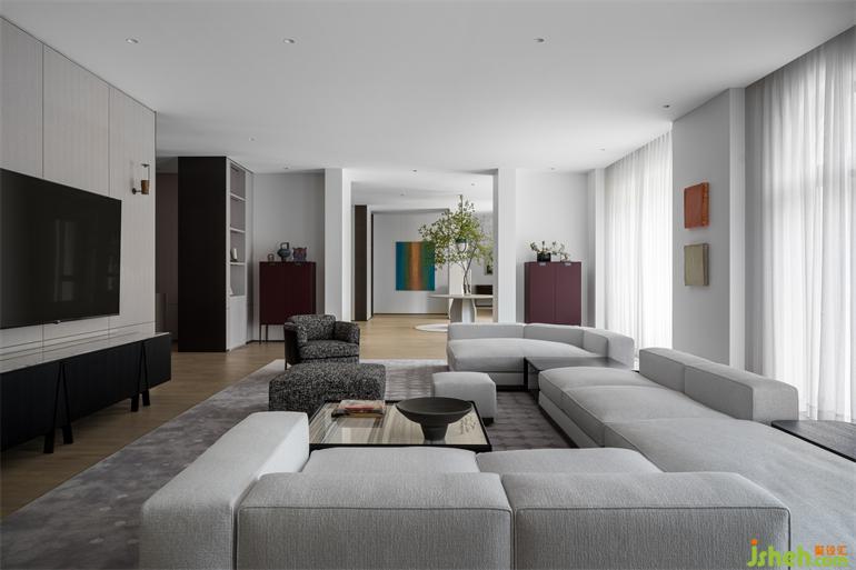 玉石雕塑質(zhì)感的臺(tái)燈,茶幾上的陶瓷盛器和黑陶小人雕塑,小小的配飾卻充滿了與眾不同有別具匠心的復(fù)古之感,別墅裝飾是帶有歷史和回憶的厚重感的東方美學(xué)。