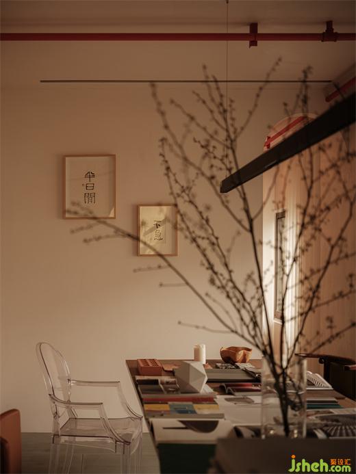 上海辦公室設(shè)計柔軟亞麻布面純白沙發(fā)與中式復(fù)古的扶手椅安靜對望,承載著歲月的沉靜與古樸。圓窗透出柔和而朦朧的暖光,給空間帶來私密性的同時,仿佛給整個空間加上了柔光濾鏡,輕柔安寧。