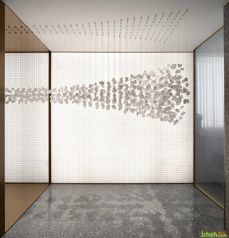 主要材料▏水磨石、磨砂亞克力、金色拉絲不銹鋼、藝術(shù)玻璃