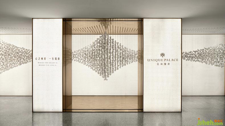 在立面鑲嵌的圓形磨砂亞克力的序列圖像襯托下,懸浮的藝術(shù)裝置似花瓣翩躚起舞,售樓處設(shè)計似繁星傾瀉灑落,于半空中凝結(jié)成詩,韻律生動,風(fēng)流婉轉(zhuǎn)。