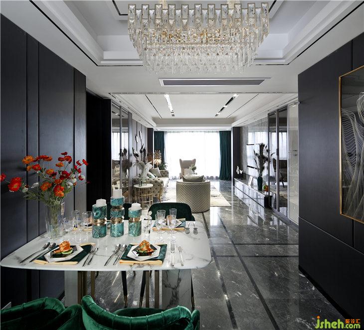 高級(jí)灰的高雅風(fēng)格,讓空間很快就會(huì)沉靜下來(lái),心中的安寧與舒服便涌來(lái)。無(wú)論顏色如何,皮革都能以中性色調(diào)完美無(wú)瑕地工作。墨綠的愜意與石材的冷漠在空間碰撞出輕奢品位的生活格調(diào),香檳的金色與絨毛的中和相應(yīng),跳出空間,且融于空間·