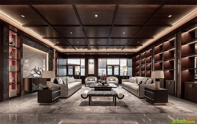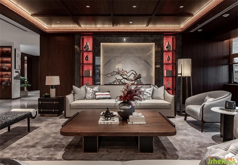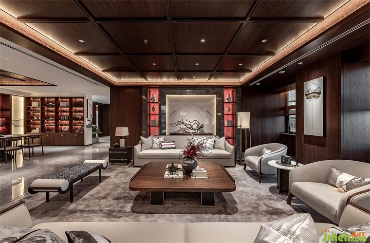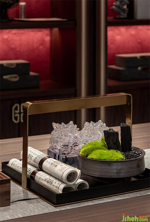 本項(xiàng)目主要以員工辦公和私人接待為主,會(huì)所設(shè)計(jì)因使用面積有限且功能較多,平面設(shè)計(jì)主要強(qiáng)調(diào)人與空間的相互影響,以及空間與空間的通透感,做到功能多樣的同時(shí)視覺(jué)也放大,推開(kāi)中式如意大門(mén),一眼看見(jiàn)半通透的中式月亮造型,引一束自然光到門(mén)廳,入戶右邊置入了室內(nèi)植物和水景,左邊墻面弧形木板和石材結(jié)合,增強(qiáng)了入戶的儀式感,藝術(shù)過(guò)廳,簡(jiǎn)潔利落,主要以布藝和深色木飾面結(jié)合,以古建筑作為陳設(shè),以體現(xiàn)中式建筑文化之美,藝術(shù)品作為空間品質(zhì)和格調(diào)不可或缺,品茶區(qū)5.8米的大茶臺(tái),視覺(jué)和功能的極大滿足,大體量的序列關(guān)系強(qiáng)化客人在此的儀式感,造型似迎客的羅漢松(活植)增加了空間的生命力,在品茶的同時(shí)可與會(huì)客廳空間共享,彰顯空間的大氣感,若接待客人較多,可滿足人與空間以及人與人之間的互相觀察和交流,廚房、衛(wèi)生間的隱形門(mén)和造型設(shè)計(jì),讓會(huì)客廳保留了對(duì)稱(chēng)設(shè)計(jì)的美感,大幅的展示架貫穿整個(gè)空間,藝術(shù)品茶具的呈現(xiàn)。