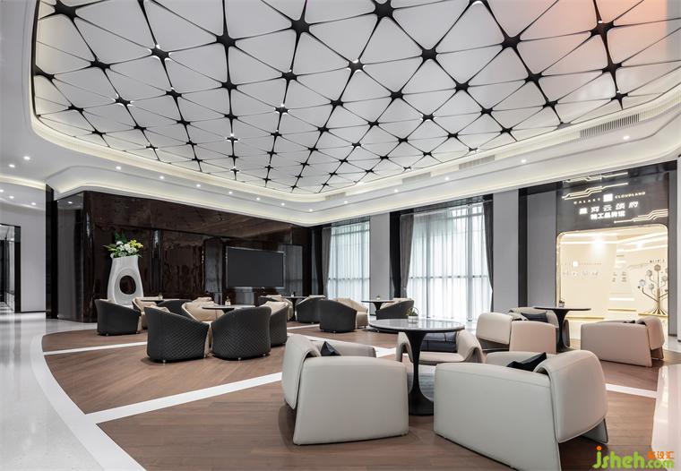 天花以星空的圖案設計, 售樓處設計有著無限可能及充滿神秘感, 讓人們坐在這艘遊艇般尋找目的地進行探險。