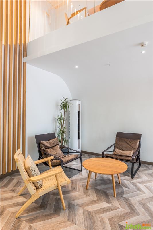 “二樓”實(shí)際上是一層挑高空間隔出來(lái)的夾層,相對(duì)來(lái)說(shuō)更安靜、更有私密感,裝修設(shè)計(jì)風(fēng)格舒適且靜謐。