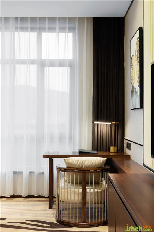 酒店設(shè)計(jì)不同于傳統(tǒng)中式的繁瑣與沉悶,新中式風(fēng)格更強(qiáng)調(diào)將一切化繁為簡(jiǎn),在造型基礎(chǔ)上極致簡(jiǎn)約,再搭配精巧的燈具、雅致的掛畫,古典的屏風(fēng)、富有情趣的博古架等,使整個(gè)居室在濃濃古韻中滲透幾許現(xiàn)代氣息。
