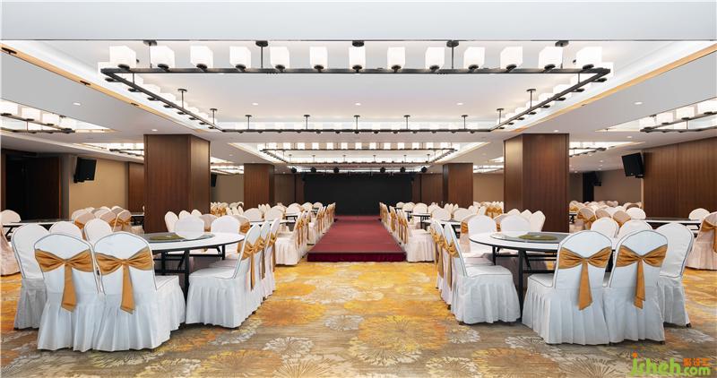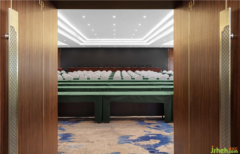 在軟裝中,除了常用的原木色中式辦公桌外,中式元素與現(xiàn)代材質(zhì)的巧妙兼柔,營(yíng)造一種樸素典雅的會(huì)議氛圍。