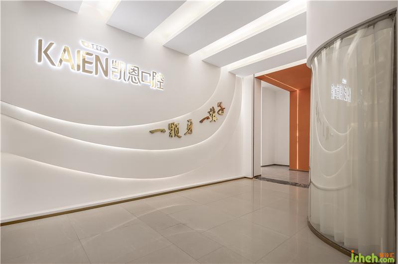 玻璃墻壁讓走廊更具大空間感,不致于狹隘窘迫。獨立半封閉式的診療室既符合醫(yī)療私密特殊性,又滿足設計美觀實用性,健康和美學不沖突。走廊一側的背景墻用乳白色石膏板簡單造型,一側切割出幾厘米的厚度,增加局部空間層次豐富飽滿,預留出的企業(yè)slogan的位置,傳達著友好溫馨的信息。