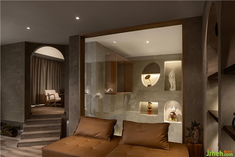 其次,在二樓還考慮了一塊休閑區(qū),設(shè)有皮質(zhì)軟彈的沙發(fā),既可背靠而坐,也可欣賞魔幻窗景。置身其中體驗(yàn)產(chǎn)品樂(lè)趣,或者與店主暢聊中古文化新思想,來(lái)此的每一秒都不虛度。