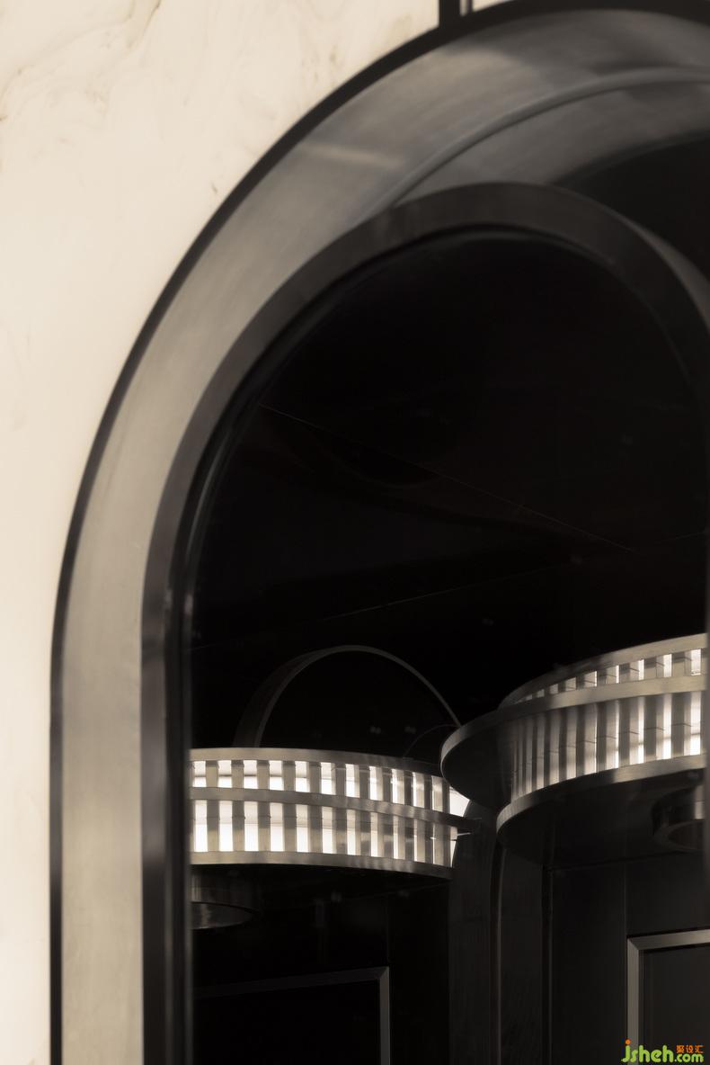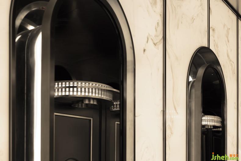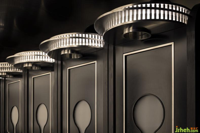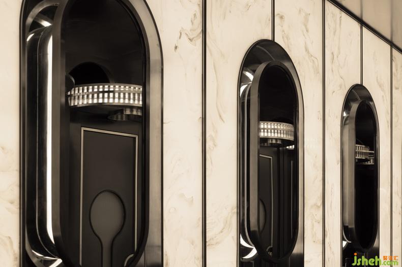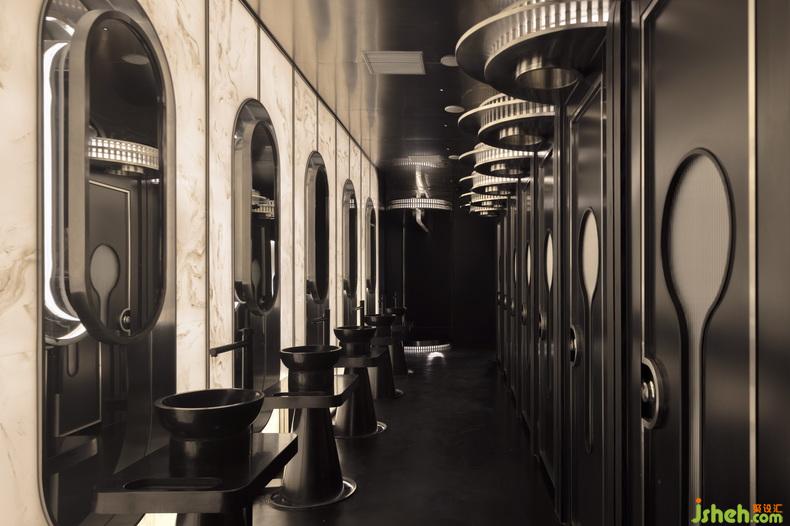 強(qiáng)烈的色彩、簡潔設(shè)計與新材料的結(jié)合,制造透視錯亂的狂歡盛宴,“劇場”概念的加入令視覺游戲更加復(fù)雜。吧臺以退讓式設(shè)計將場地讓渡給“舞臺”,夜店設(shè)計關(guān)注點歸放于人自身以及音樂上。洗手間則以逆市面潮流的復(fù)古美學(xué),沉淀為提供身心緩沖與補(bǔ)給的劇場“后臺”。