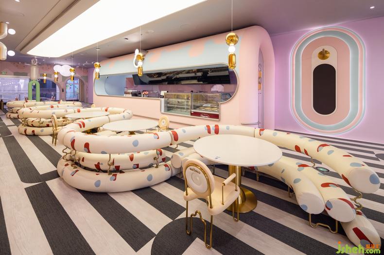 項(xiàng)目所在地浦東張江,作為中國(guó)硬核科技的集聚區(qū),某種程度上折射著人類未來(lái)的創(chuàng)新遠(yuǎn)景。外星生物體般的建筑萌態(tài),與之構(gòu)成異質(zhì)的對(duì)比卻又互為協(xié)調(diào)的補(bǔ)充。立面延續(xù)品牌的主色并中和為大地黃,契合自然主題。“奶嘴”符號(hào)連同一系列弧形的門與開窗,跳脫于灰度的城市背景,以“陽(yáng)光朋克”的立體雕塑,包裹孕育新生的“歸巢”。
