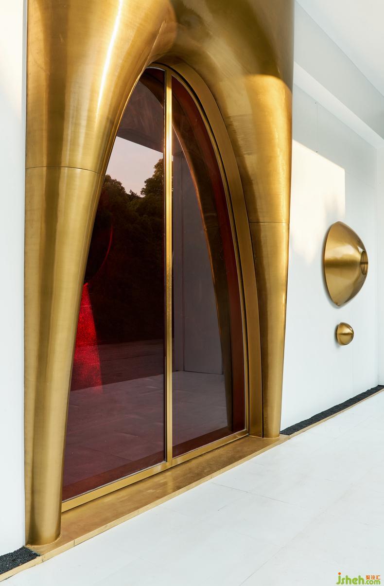 透過紅色的艙門是一座龐大的信息處理器,借助網(wǎng)絡生控體的錄制和屏幕投影,酒吧設計人類全部歷史和記憶被還原和再現(xiàn).