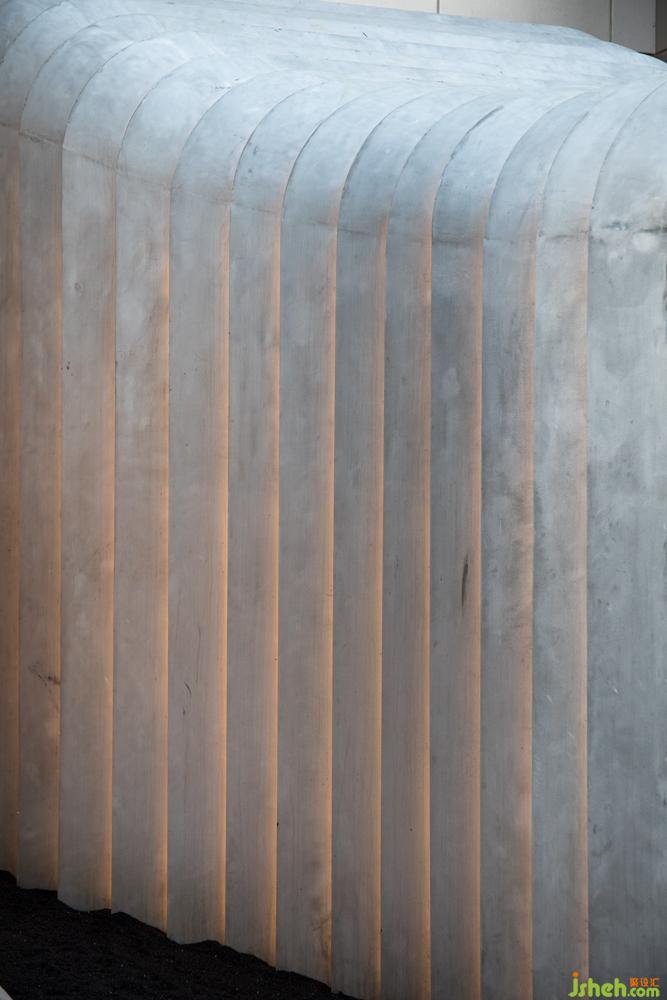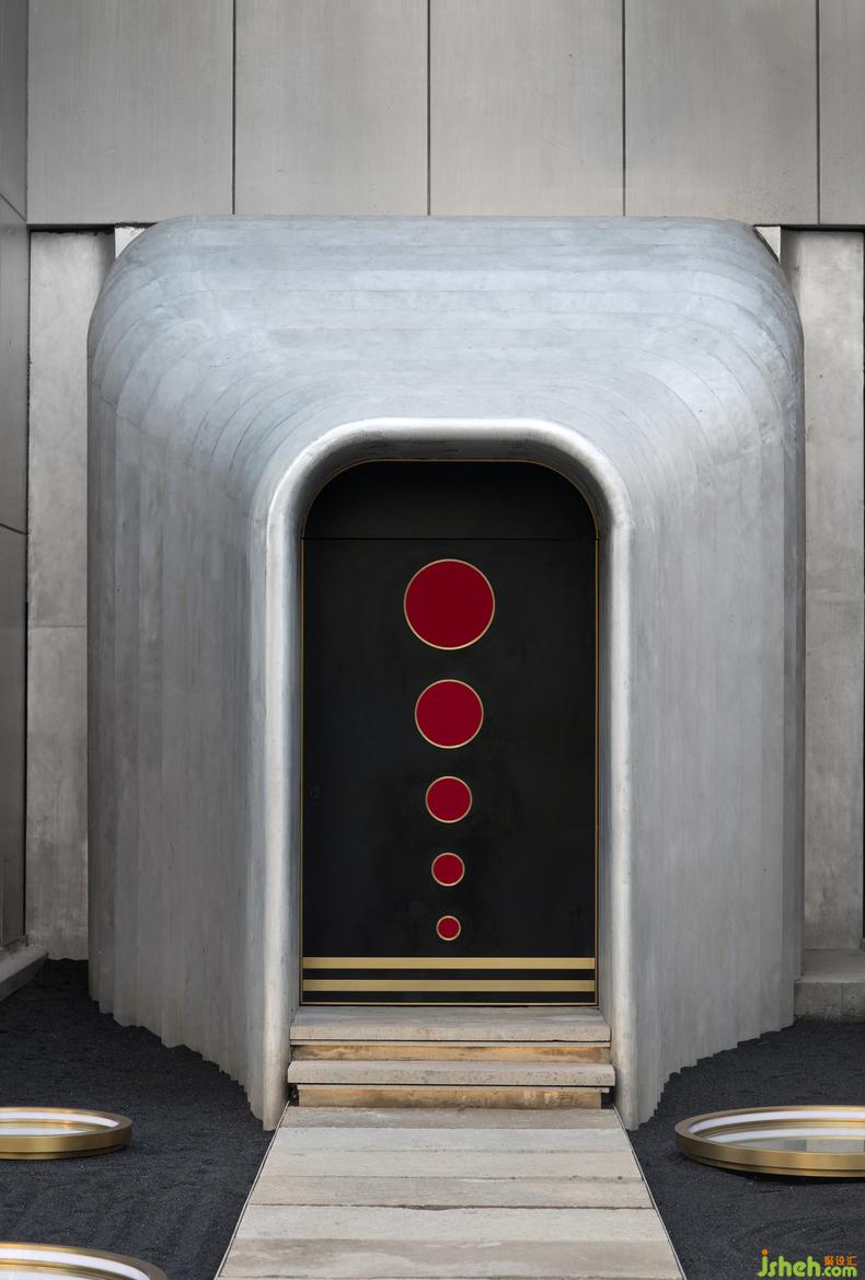 純鋁手工鍛造而成的通道入口,是一個(gè)巨型的相機(jī)皮腔造型,層層包疊,室內(nèi)設(shè)計(jì)師為余下的體驗(yàn)奠定了記錄的基調(diào).