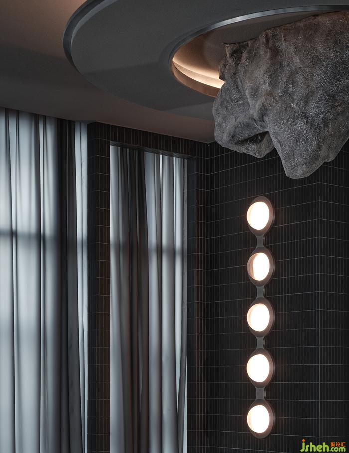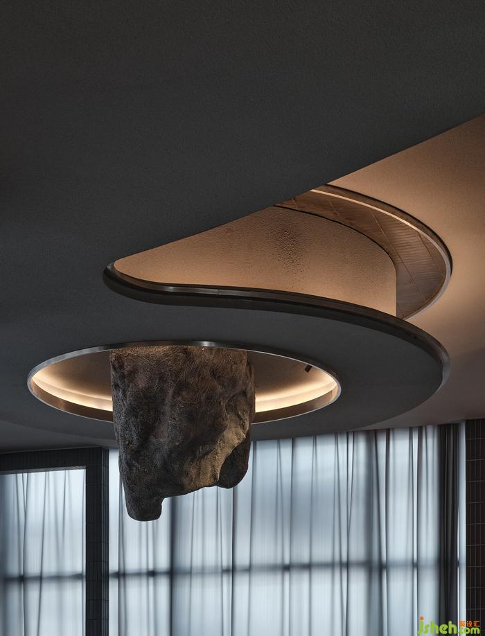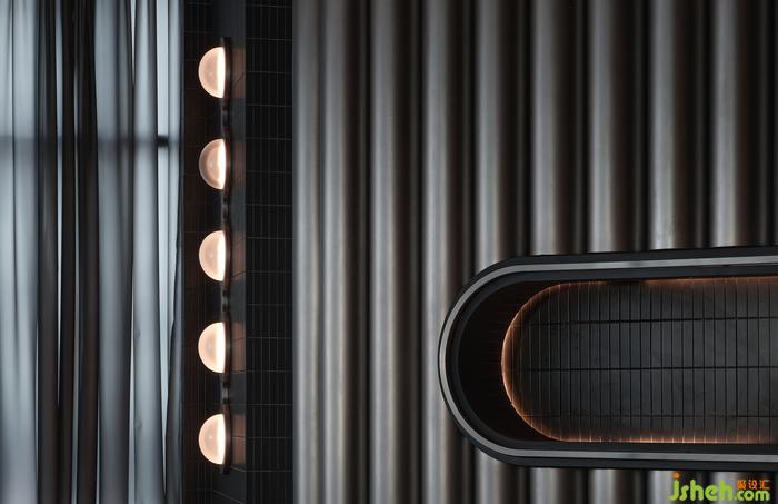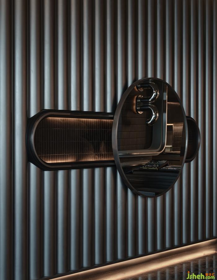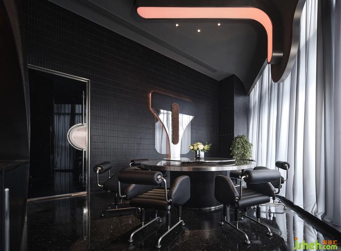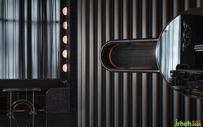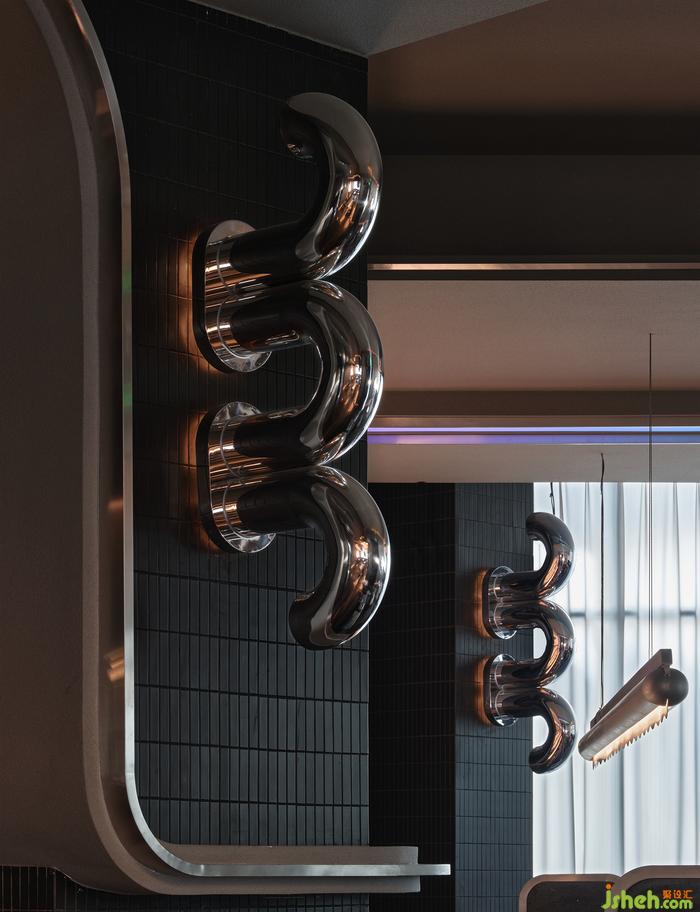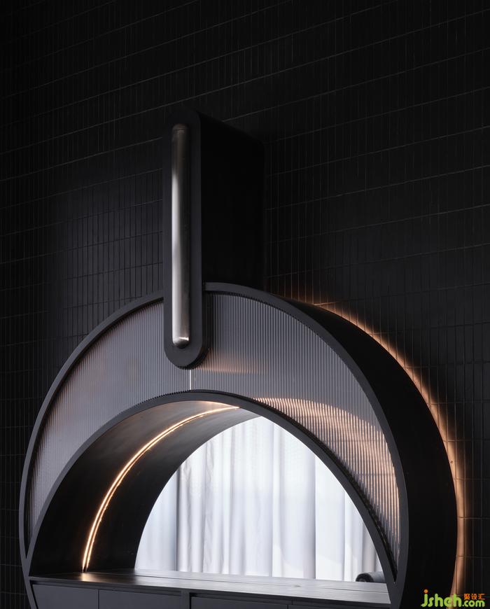 “如果你能改變?nèi)藗冇^看的方式,就可能改變他們思考的方式?!边B接垂直動(dòng)線的玄關(guān),其布景由瓷磚、涂料、不銹鋼以最基礎(chǔ)的狀態(tài)形成組合,非傳統(tǒng)的工業(yè)材料轉(zhuǎn)譯而成視覺符號,雖無刻意卻似魔法,餐廳設(shè)計(jì)承載功能之外的智性與美感的雙重愉悅,延展撩人意涵的冷幽默。
