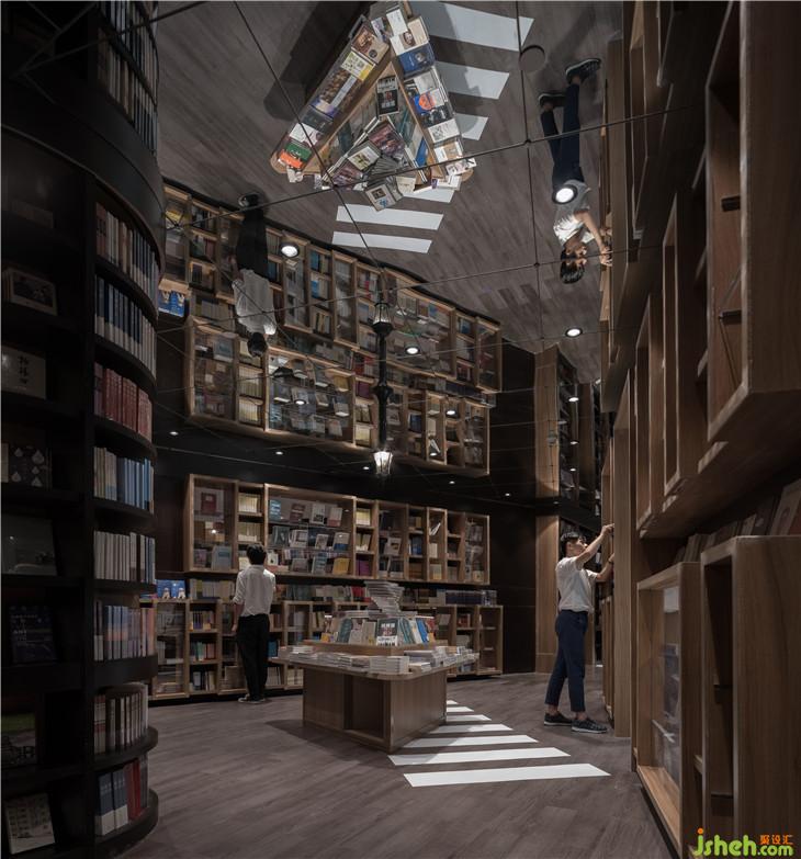穿越這安靜的圖書公園便來到了書籍的天空之城,一條蜿蜒的路徑貫穿4幢由書架構(gòu)筑成如建筑般的書架,讓讀者體驗穿越在真正的書的城池,在路徑上看在這里每一間房子外的墻都是書架構(gòu)成,而且留有大面積的可透視窗口,可以看見“房子”內(nèi)的情景,但從房子內(nèi)部看則是一個個文化藝術(shù)主題和相應(yīng)的書籍館。4間建筑內(nèi)面積有大有小,小型的猶如一個安靜的書房,大的可以容納小型的讀書會。這里用書記構(gòu)建城市的模樣,與外界喧囂的街區(qū)不同,這里只有安靜與作者之間的隔空交流與感悟的精神世界。書架之間的路徑寬窄漸變,曲徑優(yōu)折間可見地面標(biāo)示的斑馬路線,這里,恍惚間像是走在上海的百年街道感受浪漫與上海的情懷。室內(nèi)設(shè)計師