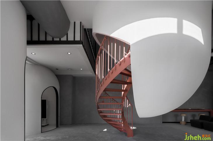 設(shè)計師希望通過這樣的概念設(shè)計來述說信息時代下的革命情懷,材料運用上偏向干凈冷靜的混凝土以刻畫空間業(yè)態(tài)背后的干練氣質(zhì),并希望通過空間的垂直動線與視線設(shè)計可以為共享辦公的研發(fā)人員與消費體驗者提供一個可以在同一個藝術(shù)空間下共同創(chuàng)作出一個多功能復(fù)合型的辦公與商業(yè)模型。