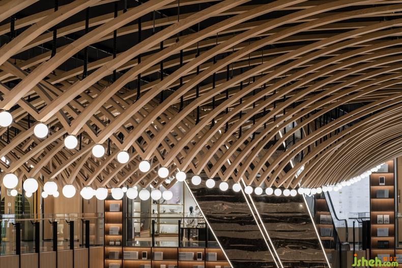 陣列式的拱狀吊頂裝飾,如同自然生長的枝椏,為整個空間鋪陳悠閑愜意的氛圍質(zhì)地。規(guī)律排列的布局又使得空間如同藝術(shù)館般,極具視覺張力與觀賞性。