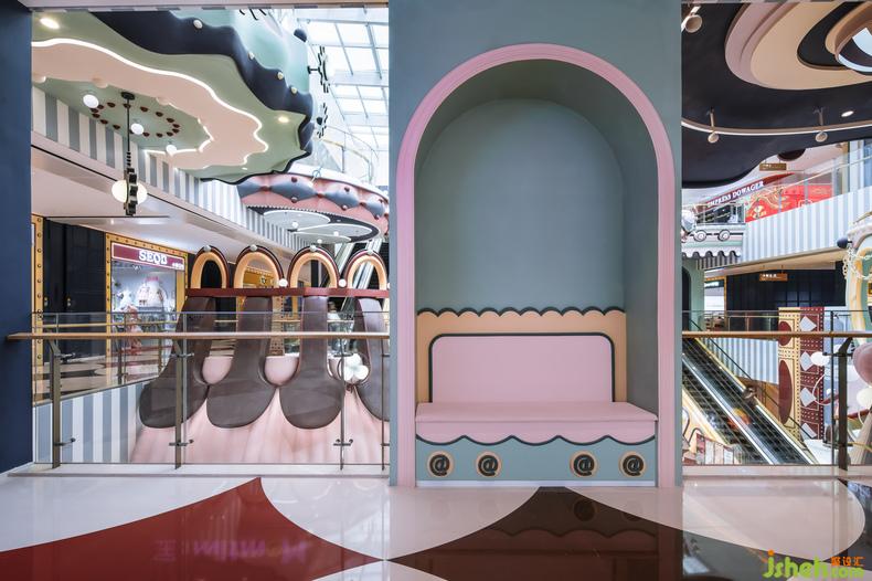 公區(qū)空間在愉悅目標消費者的同時,更成為一個蘊含教育意義的公益性場所,主題公區(qū)設計文化與色彩兩種不同的啟蒙教育要素一同綻放在空間中,強調(diào)了閱讀習慣與美學賞析能力對于兒童成長的重要性,更為親子陪伴與教育提供了跳脫出傳統(tǒng)封閉性場所的開放式新領地。