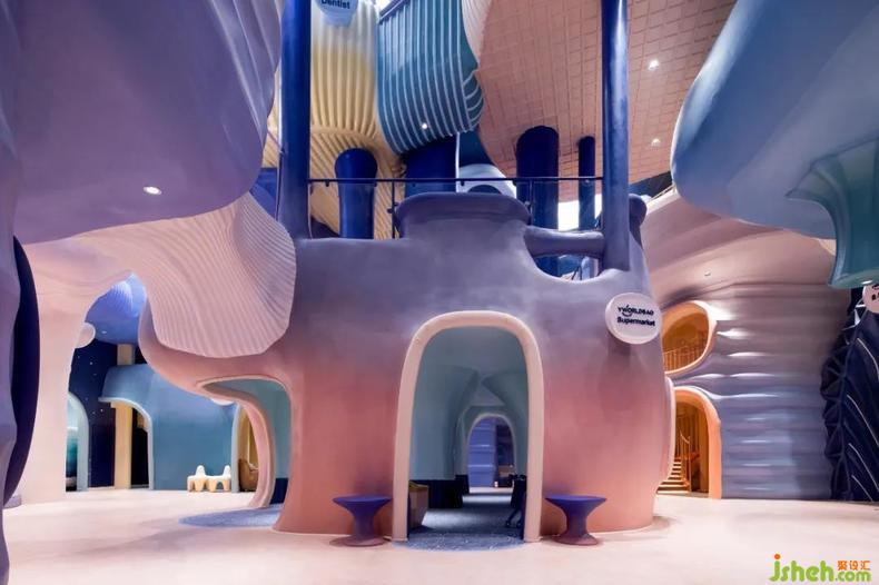 應原創(chuàng)親子文化娛樂品牌“優(yōu)我寶”的委托,唯想國際將一座老舊廠房煥新改造為大型兒童藝術美學樂園。廠房優(yōu)越的室內層高與新品牌的初生引發(fā)了設計師的想象,一片無限閃動的藍色海洋從潛意識里浮現(xiàn)。
