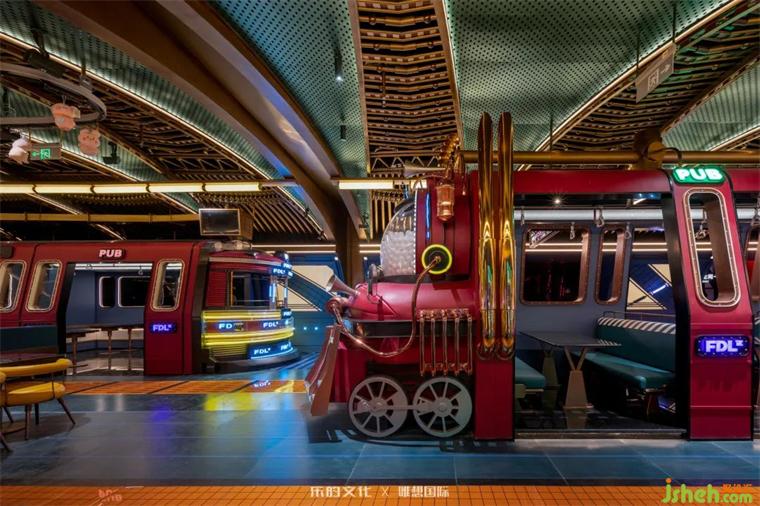 主題劇場式實(shí)景搭建的背后,是一套統(tǒng)籌了功能與美學(xué)的復(fù)雜設(shè)計(jì)規(guī)劃體系,設(shè)計(jì)師在確保美學(xué)比例不被破壞的同時(shí),實(shí)現(xiàn)了區(qū)域的最大化利用與附屬功能的合理性置放。消費(fèi)者動(dòng)線順著空間格局的變化向前流線型延申,裝修設(shè)計(jì)師打破天花規(guī)律化演變的方式,同時(shí)運(yùn)用材質(zhì)的對比與色彩的冷暖穿插,創(chuàng)造了“靜態(tài)展現(xiàn)動(dòng)態(tài)美學(xué)”的奇妙感官體驗(yàn)。豐富的細(xì)節(jié)支撐起空間飽滿的層次,設(shè)計(jì)師在火車車廂內(nèi)外都規(guī)劃了不同的用餐區(qū),餐桌椅可機(jī)動(dòng)性調(diào)配組合,裝修設(shè)計(jì)滿足不同運(yùn)營使用需求,打造自由開放的社交氛圍。