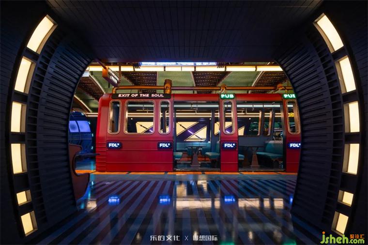 盜夢列車停靠之處,銜接著前往這場玩樂大冒險下一站點(diǎn)的神秘通道,炫彩燈箱裝飾的金屬管道四通八達(dá)地串聯(lián)起了其他娛樂區(qū),帶領(lǐng)玩家們瞬移至畫風(fēng)各異的平行時空。差異性極強(qiáng)的空間格局與風(fēng)格化色調(diào)大大豐富了整體項目的體驗(yàn),裝修設(shè)計的亮眼一筆也再次激發(fā)消費(fèi)者的探索欲。