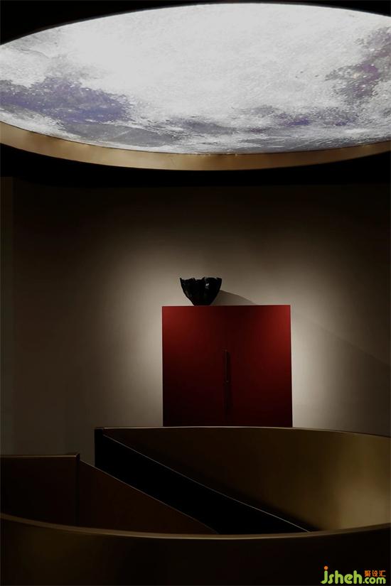 拆除掉局部的樓板過后,在空間置入一個圓形的旋轉(zhuǎn)樓梯在室內(nèi)連接樓上樓下兩個空間。家具展廳設(shè)計通過旋轉(zhuǎn)樓梯上到二樓空間,進(jìn)入到一個充滿靜謐、神秘的空間。產(chǎn)品凸顯了一股神秘的東方氣韻,正紅色的斗柜為空間增添了一筆濃厚的色彩。產(chǎn)品本身浸透在空間的專屬氣質(zhì),挖掘品牌本身的產(chǎn)品精神,塑造獨(dú)有的品牌屬性。展廳設(shè)計
