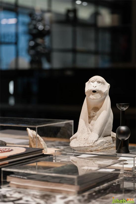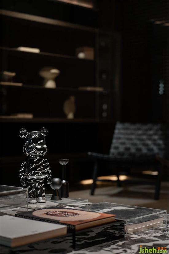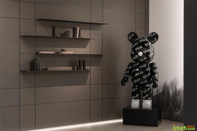 進門墻面為柜體和隔板組合形式,潤舍納圖可以展示產(chǎn)品,表達方式較為保守,厘羋小熊的加入,為空間注入了靈氣。